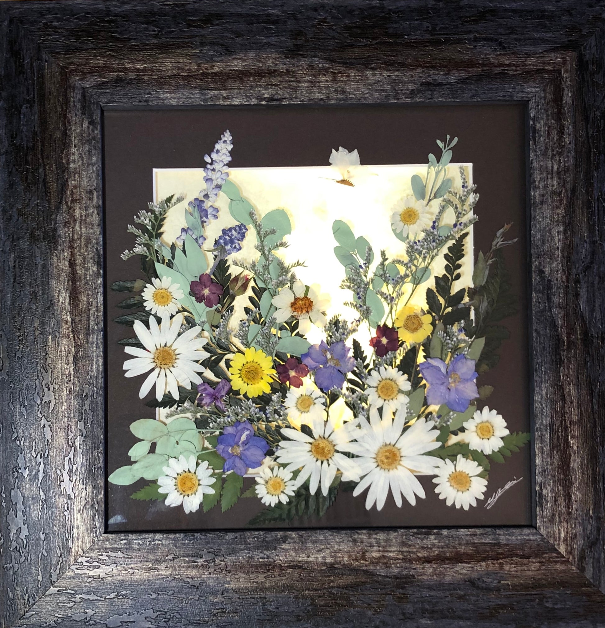 - Original handcrafted pressed flower art